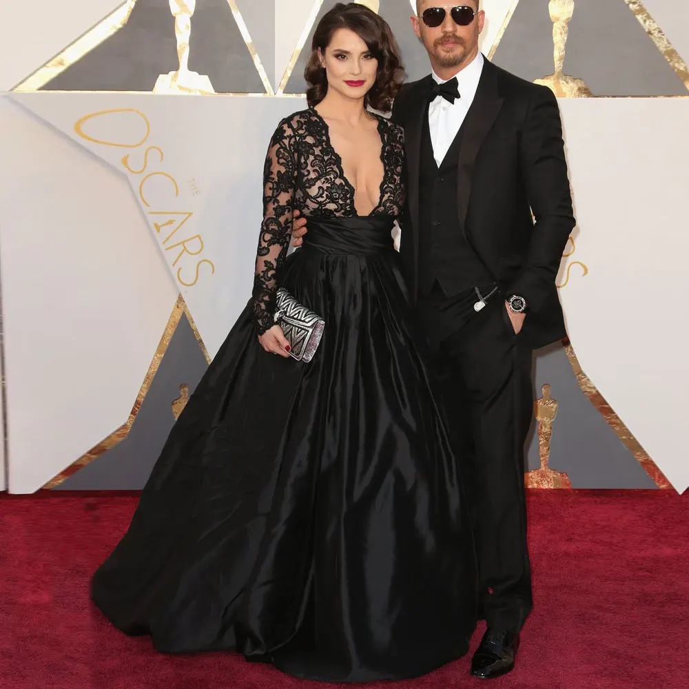 Main Features : 2016 Oscars Black Evening Dresses Deep V Neck Long Sleeves Lace Evening Gowns A Line Red Carpet Celebrity Dress CL-7