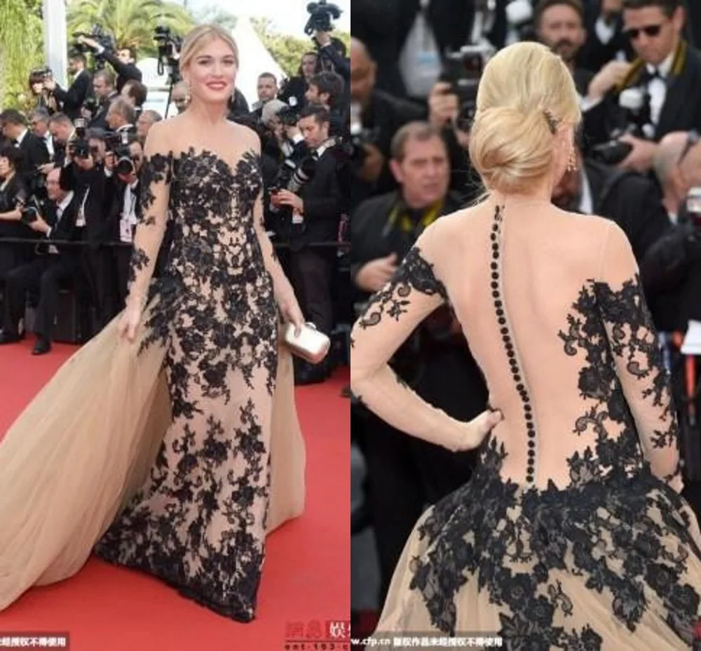 Document Review : Gorgeous Long sleeves black lace celebrity dresses 68th Cannes Film Festival sexy mermaid formal evening gown buttons vestidos