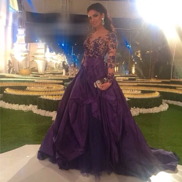 Document Review : Purple 2016 Celebrity dress A line Sheer V neck Long Party Evening Gowns